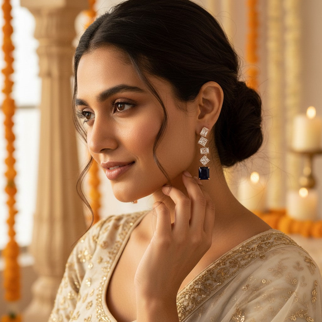 Elegant, soothing, and effortlessly chic — the Siora Blue CZ Earrings capture the calm brilliance of blue in a refined rose gold setting.