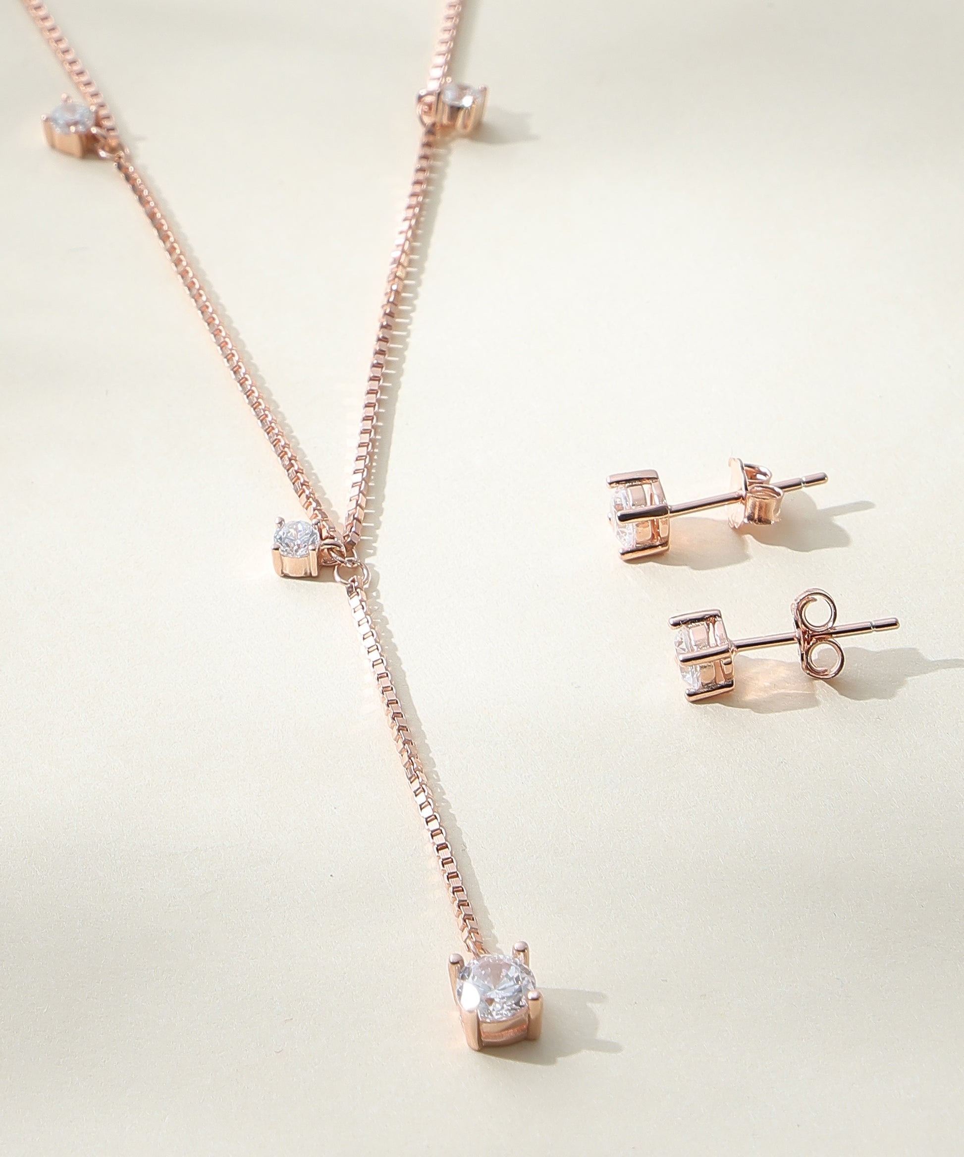 Siora Jewels Eternal Pearl Halo 925 Silver Jewellery Set for Women | Rose Gold Finish with Pearl & Zircon Detailing