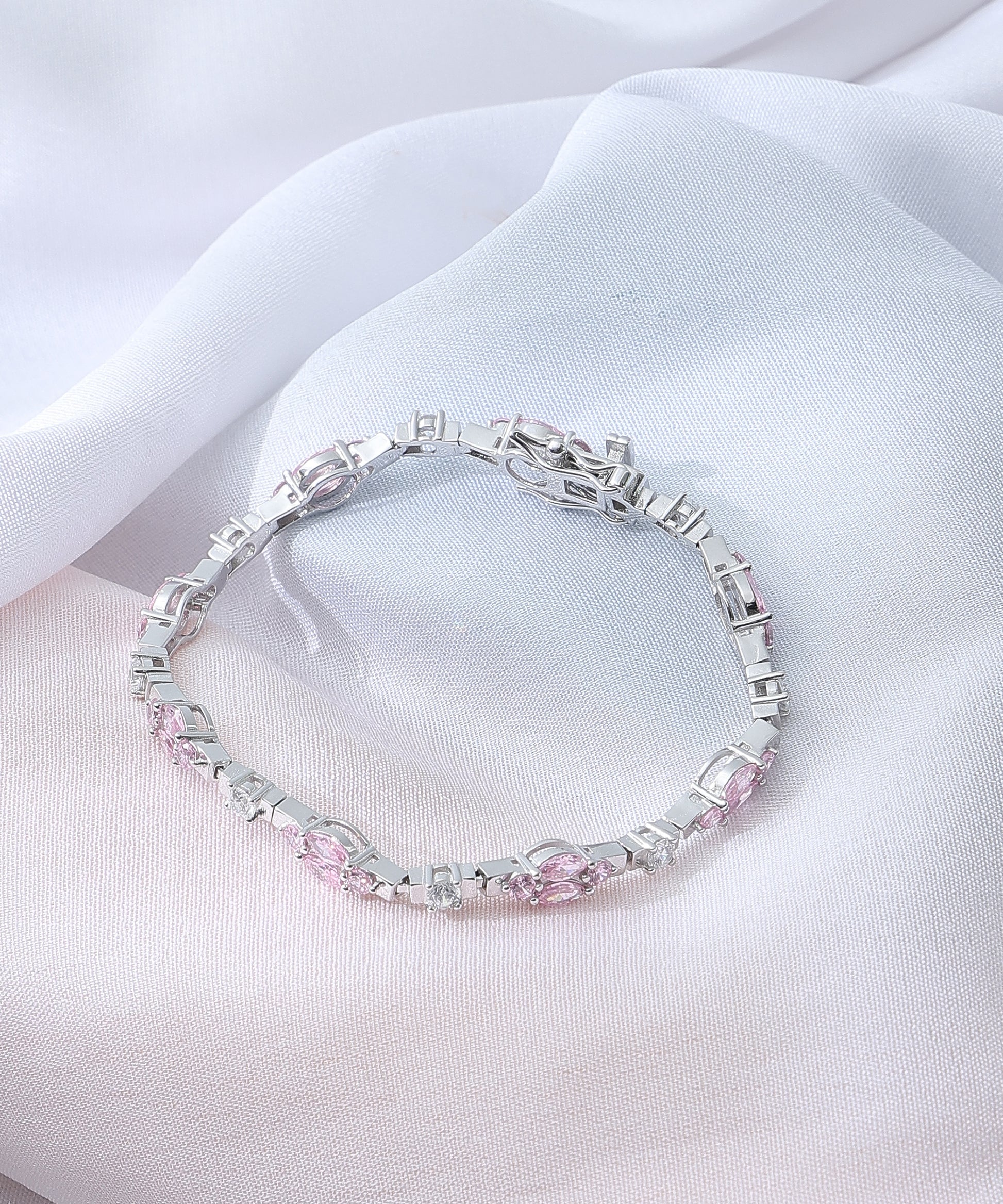Soft, radiant, and feminine — the Siora Jewels Blush Petal Bracelet in 925 sterling silver with a rhodium finish celebrates grace and elegance through its delicate blend of pink and white zircon stones