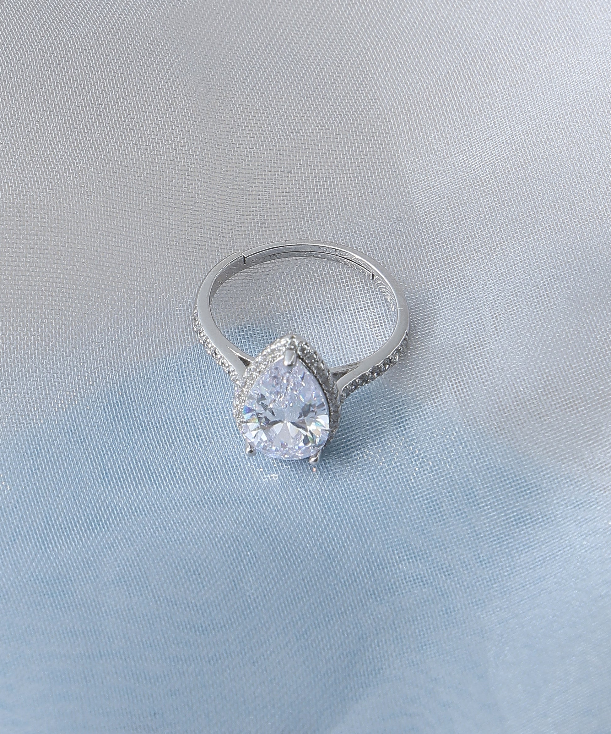 A teardrop of brilliance — Siora’s Lume Tear Ring in rhodium finish captures timeless sophistication with its luminous zircon solitaire and sleek silver band.