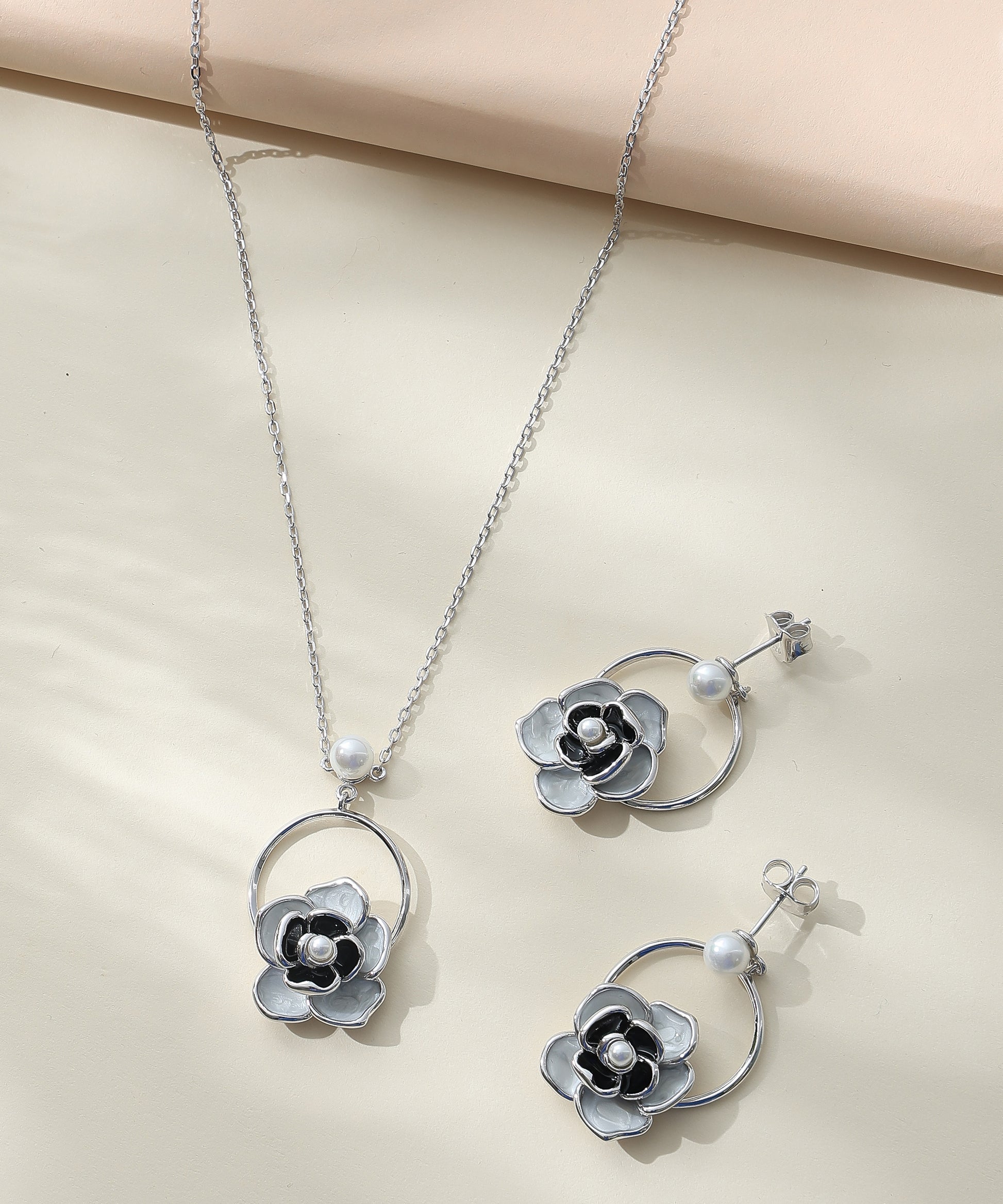 Minimal loops with a luminous glow — the Siora Pearl Orbit Necklace is styled in 925 sterling silver with a sleek rhodium finish, featuring interlocking circular motifs adorned with luminous pearls and AAA+ zircon sparkle.
