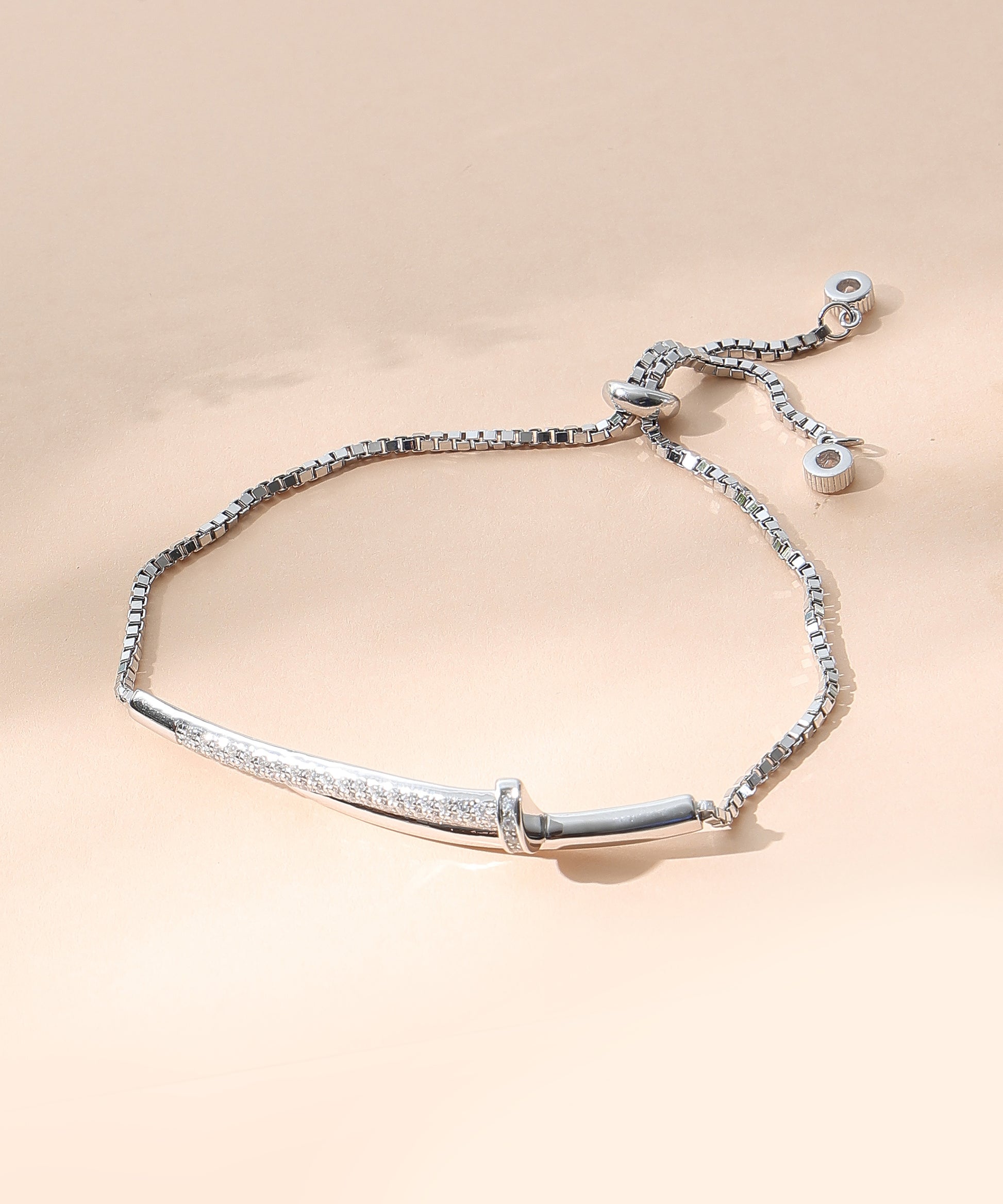 Siora Jewels White CZ 925 Silver Adjustable Bracelet for Women | Rhodium Finish with Elegant Minimal Detailing