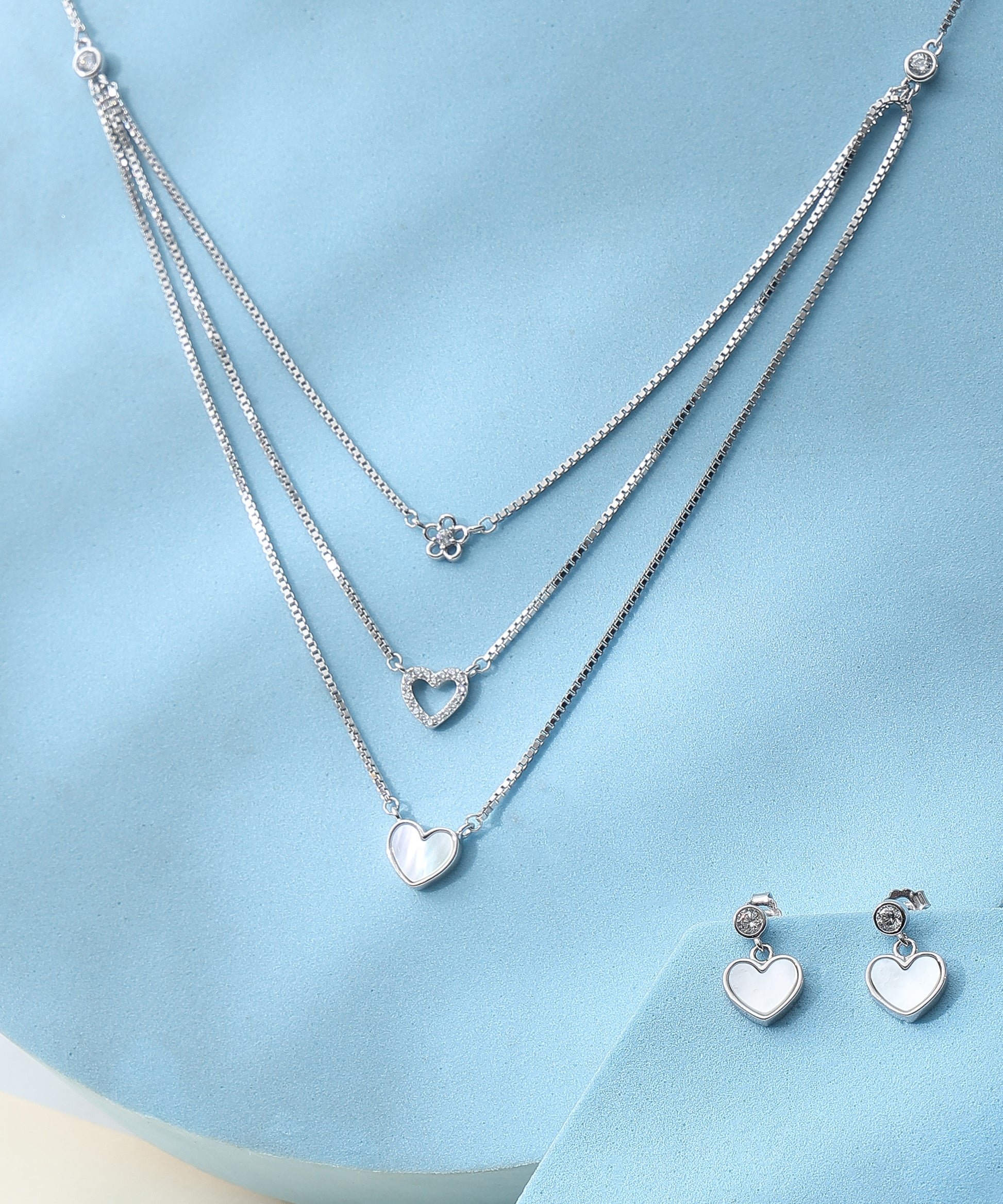 The Siora White Heart Pendant Set embodies modern romance in its purest form.