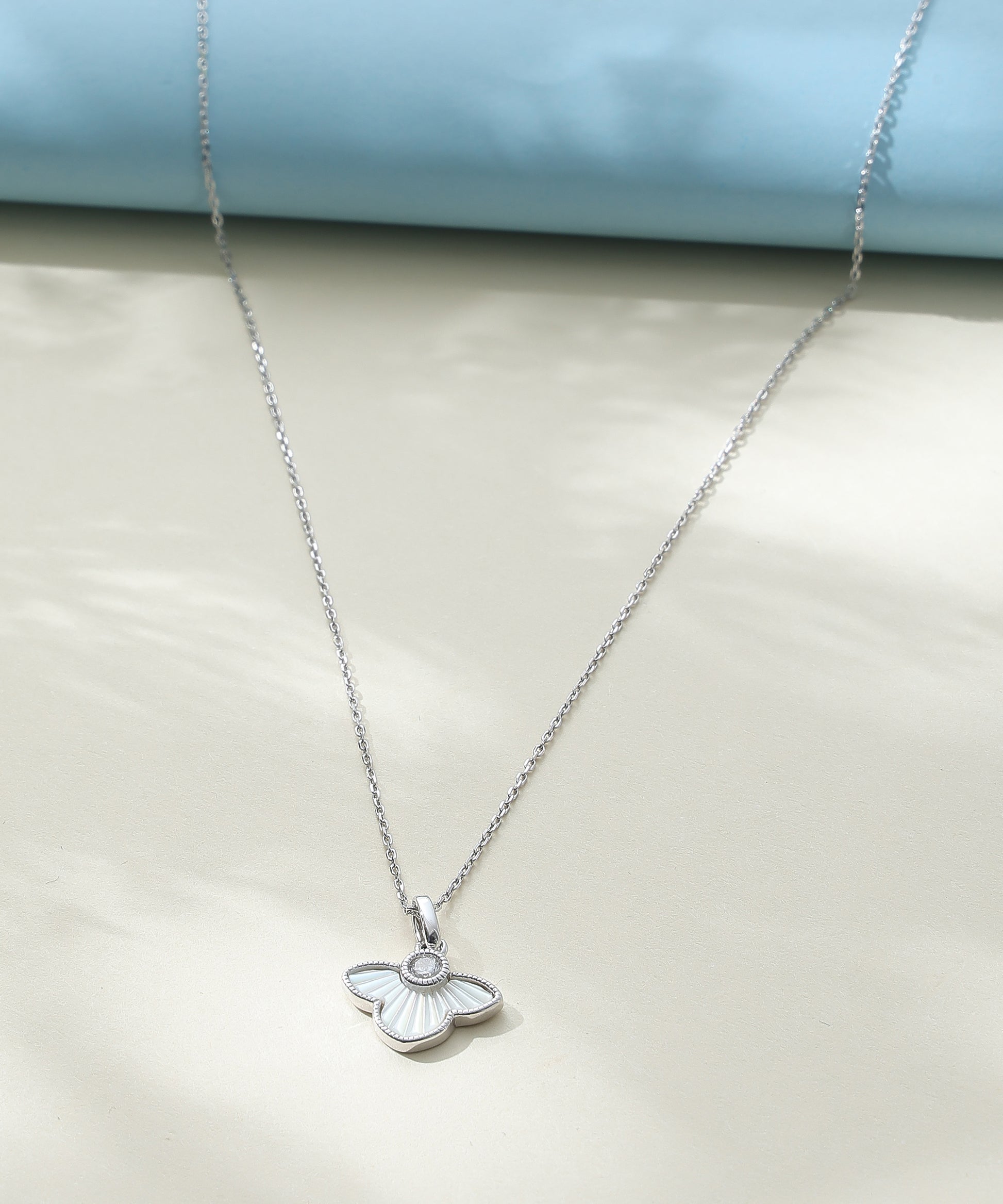 Crafted in 925 sterling silver with rhodium plating, this necklace features a soft white petal design inlaid with mother of pearl and accented with a zircon center. A delicate women’s necklace that reflects timeless beauty and effortless charm.